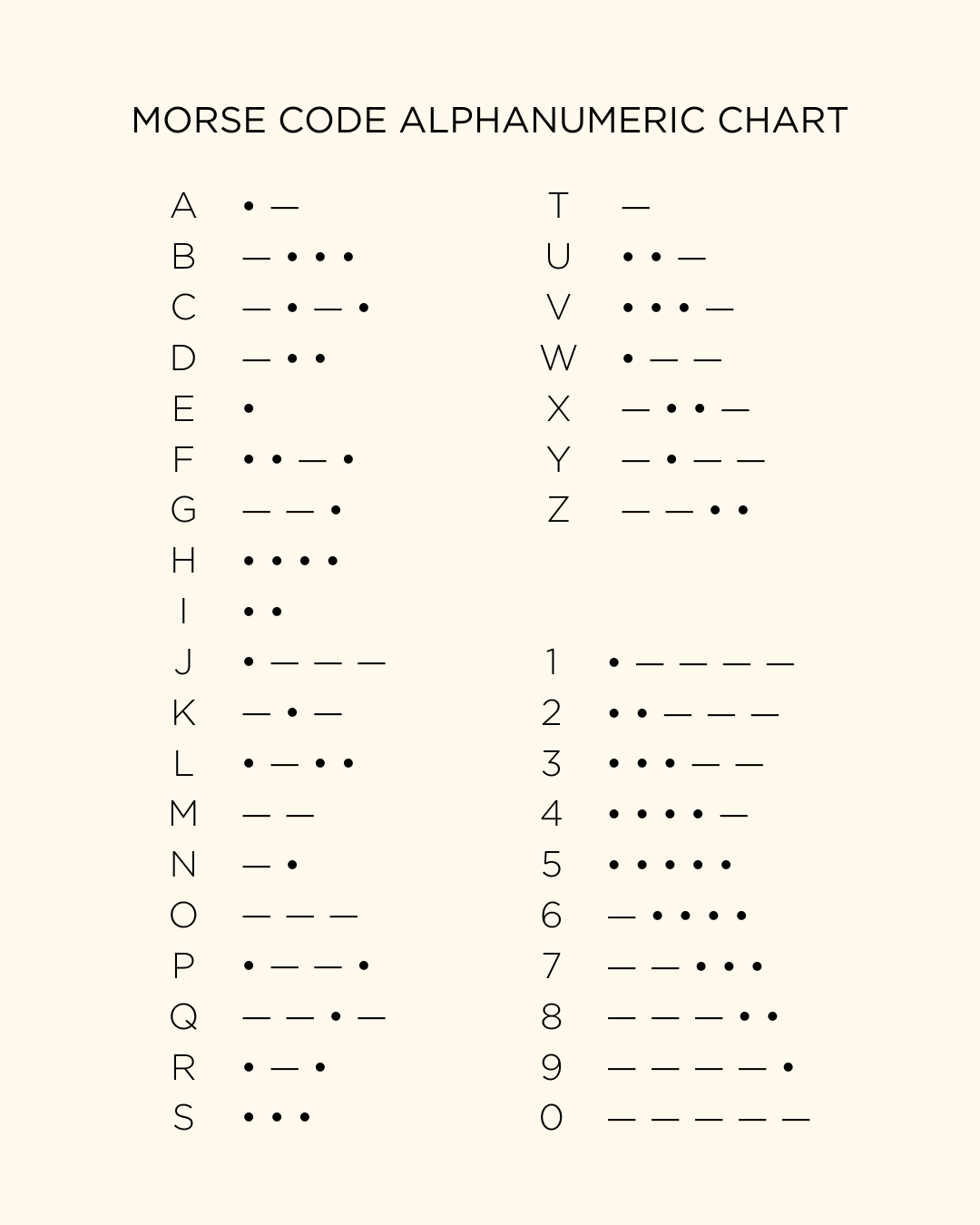 Morse Code Alphanumeric Chart